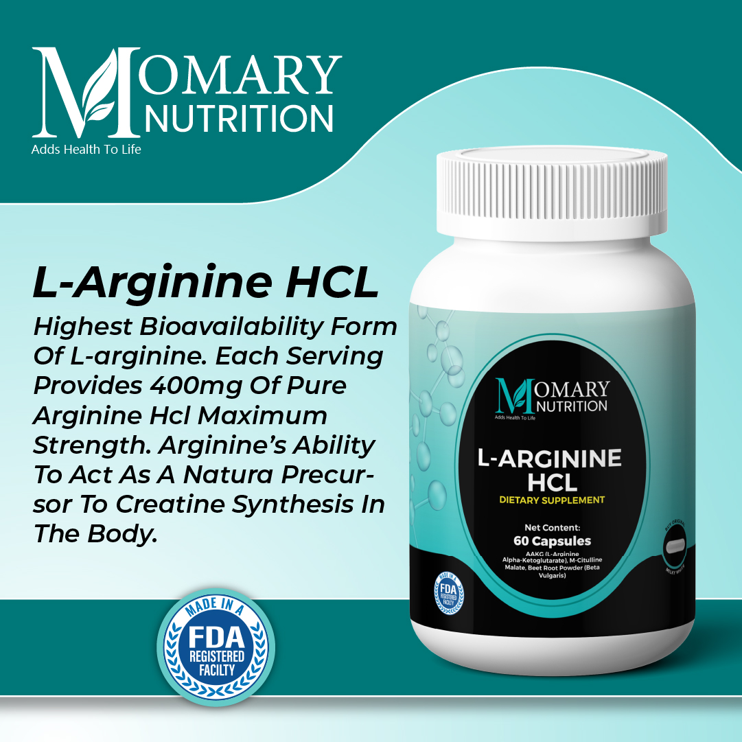 - L-Arginine HCl: Supports nitric oxide production, promoting improved blood flow and cardiovascular health.